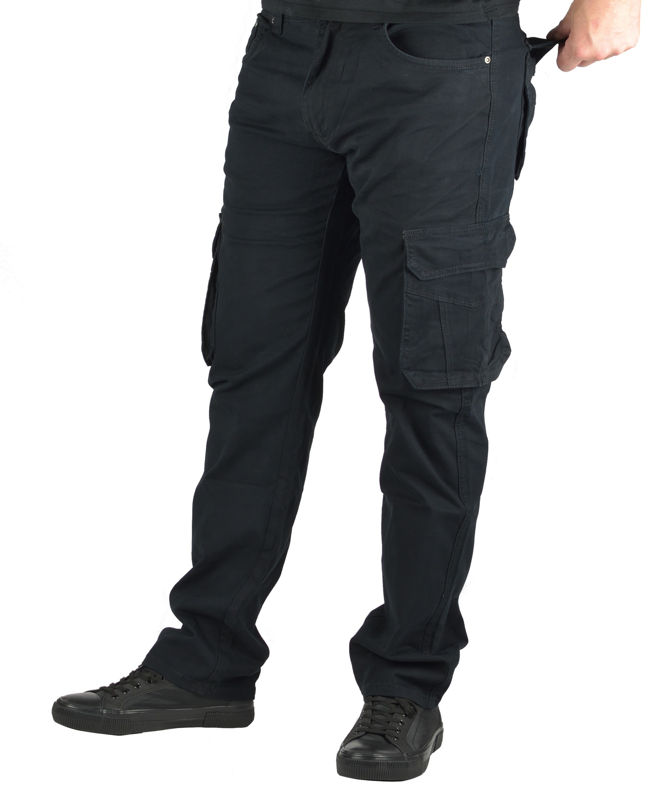 Postaw na wygodę i uniwersalny styl z naszymi męskimi spodniami typu bojówki w kolorze czarnym. Wykonane z wysokiej jakości materiału, gwarantują komfort noszenia na co dzień, do pracy, na spacer czy wypad na ryby.